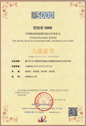 近日,由国家科技部中国科技信息研究所举办的“2021年中国科技论文统计报告发布会”通过网络直播方式举行,会上公布了“领跑者5000 ——中国精品科技期刊顶尖学术论文(F5000)”入选情况。亚洲av赵明松副教授予2016年1月发表在我国土壤学科领域高水平学术刊物《土壤学报》上的《基于RUSLE模型的安徽省土壤侵蚀及其养分流失评估》论文,经过定量分析遴选和同行评议推荐,入选“领跑者5000-中国精品科技期刊顶尖学术论文”(简称“F5000”)。