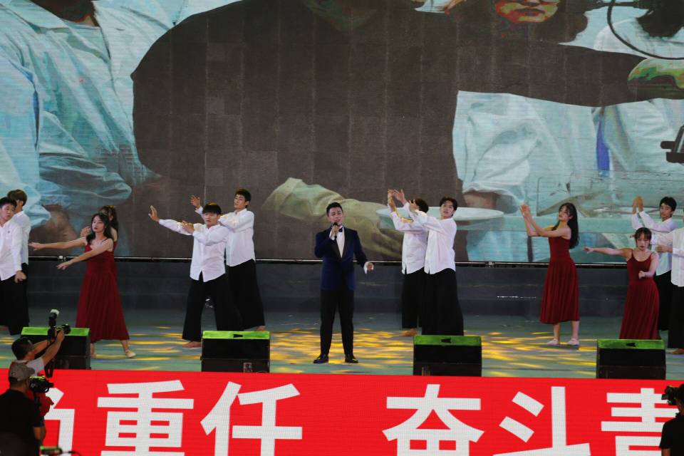 每晚在训练场上他们稳固的动作,换来了舞台上飒爽的身姿;每晚在训练场上他们挥洒的汗水,换来了舞台上响遏行云的呐喊;每晚在训练场上他们点点滴滴的进步,换来了舞台上展现出的最完美的“星”火相传。他们用饱满的热情完善并完成着每一个舞步,在聚光灯下构成一幕幕令人振奋的画面。舞姿时而柔缓,时而刚强,演绎着空测学子的英雄本色。