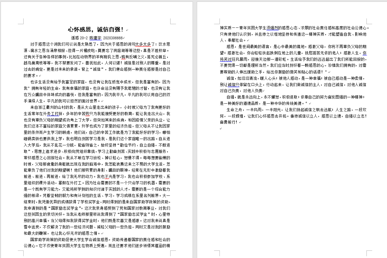 “诚信·感恩·自强”主题征文