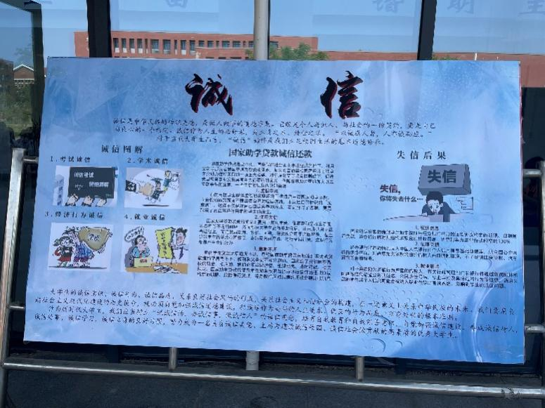 图片展围绕“诚信”主题,展出古今诚信故事、诚信漫画、诚信名人名言、防诈宣传以及助学贷款还款流程等方面的图片,帮助同学们更加全面细致地了解资助诚信教育的丰富内容和深刻内涵。