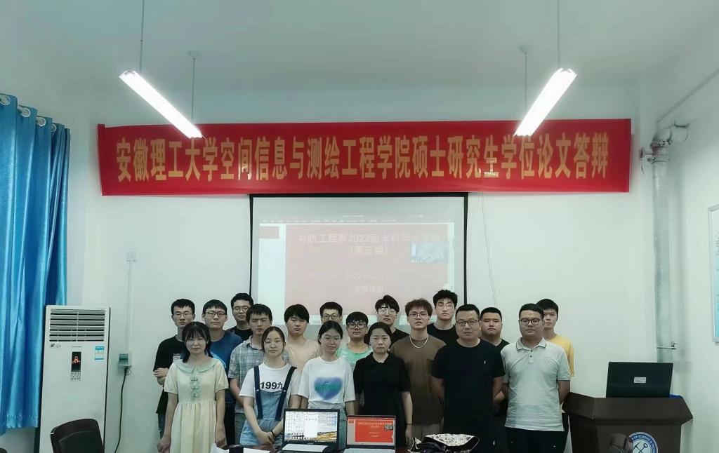 共54名同学参加了答辩。现场邀请了安徽建筑大学高旭光副教授、淮南矿业集团杨灯云高级工程师和中煤新集刘庄矿业股份有限公司程诗广高级工程师等校外专家指导毕业答辩工作。学生通过PPT汇报、软件演示等形式向答辩委员会展示自己的毕业论文成果,答辩委员会就毕业论文的关键技术与成果等方面问题进行了提问,了解学生掌握知识的情况。整个答辩过程,学生们表现出较好的应答能力,严肃有序,进展顺利。本次答辩会有效地促进了学生毕业论文的修改与完善,加深了对导航工程专业本科生培养质量监控与持续改进的思考与认识。