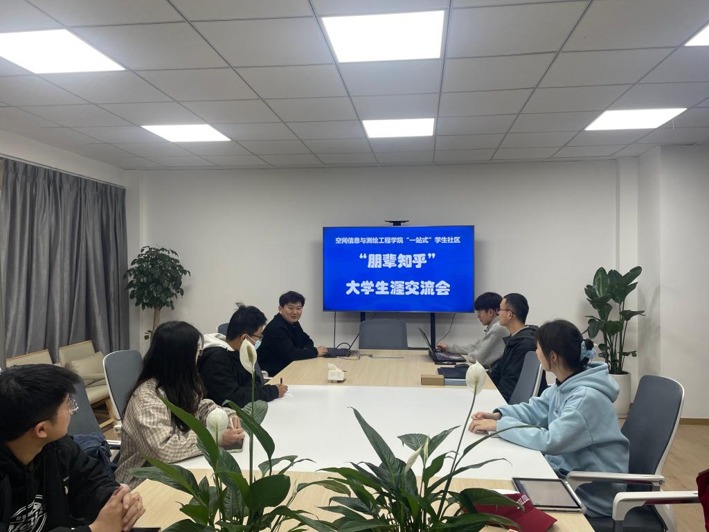 在“一站式”学生社区会议室开展“朋辈知乎”大学生涯分享交流活动,2023年成功保研上岸的荆成、陶振强两位本科生受邀为大家分享交流了学习经验。