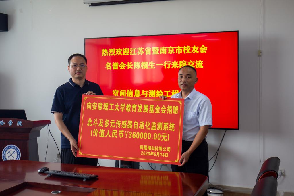 6月14日下午,江苏科博空间信息科技有限公司仪器及创新资金捐赠仪式在求本楼503会议室举行。校党委常委、副校长张平松出席捐赠仪式并讲话。采煤74级校友、南京化建产业集团原副局长陈榴生,地质83级校友、江苏煤炭地质局纪委副书记张宏安,电气89级校友、南京派光高速载运智慧感知研究院副总经理吴海君,测绘2000级校友、南京信息工程大学科技产业处副处长、江苏科博空间信息科技有限公司创始人柯福阳等校友一行8人,校合作发展处副处长窦家环,亚洲av
