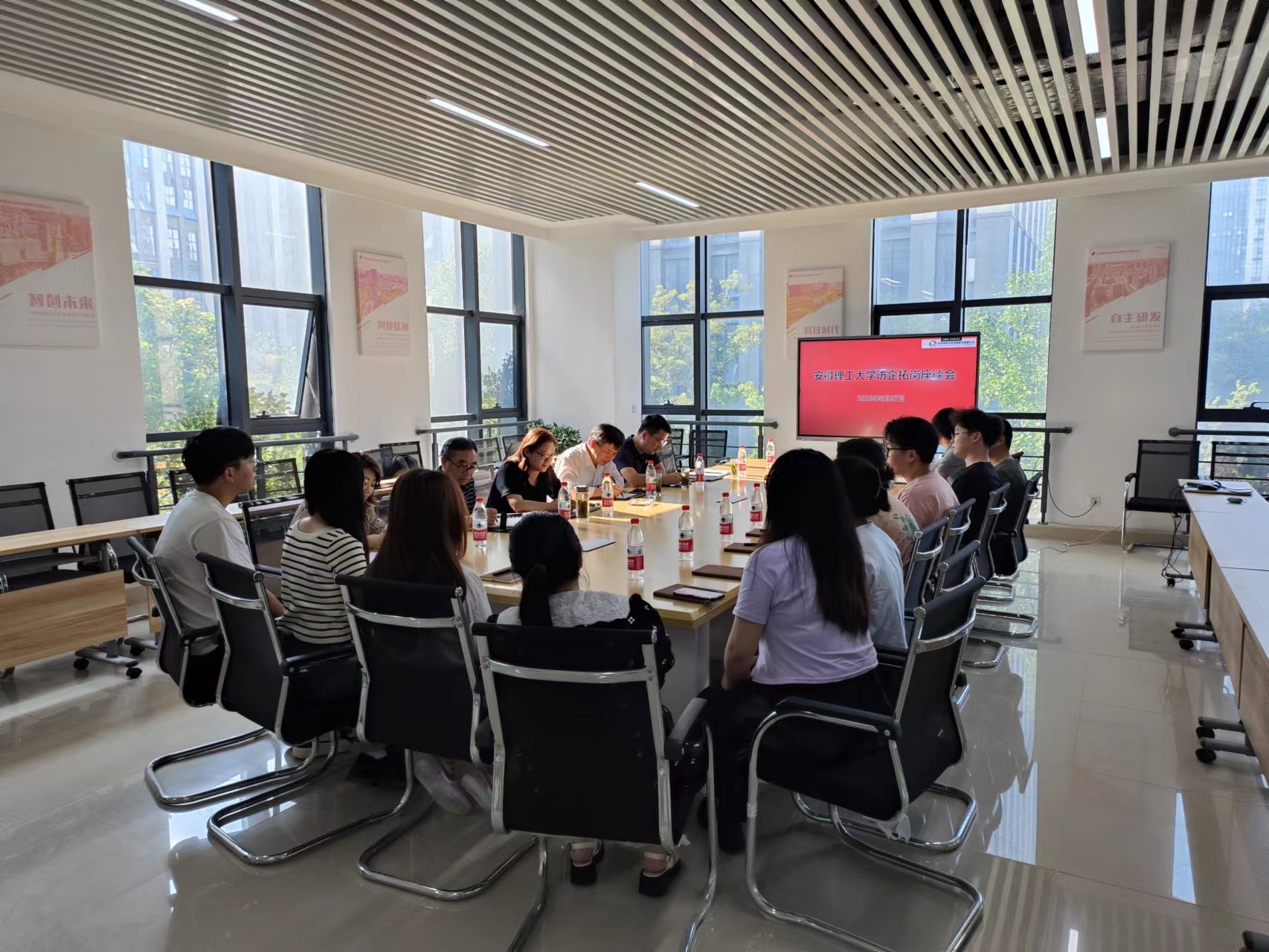 座谈会上,盛鸣红对余学祥一行的到来表示热烈欢迎,并介绍了公司业绩、业务领域、科技创新、校企合作、岗位设置、与我校共建的“城市实景三维与智能安全监测安徽省联合共建学科重点实验室”(以下简称“共建学科重点实验室”)建设规划进展等方面情况;亚洲av新入职安徽前锦公司的5位同学从专业背景、实践经历、入职体会等方面做了自我介绍;刘超从建设背景、目标任务、建设基础、实验室机制举措等方面对共建学科重点实验室作了介绍;余学祥等与同学们进行了多方面交流,了解到亚洲av毕业研究生和本科生的工作和生活状况,鼓励他们积极转变社会角色、努力工作,勇于发现和解决公司在生产和科技中遇到的技术瓶颈问题,并希望他们积极投入到共建学科重点实验室建设工作中。校企双方就暑期学生实践、就业创业、就业能力提升、共建学科重点实验室建设等方面作了深入交流。