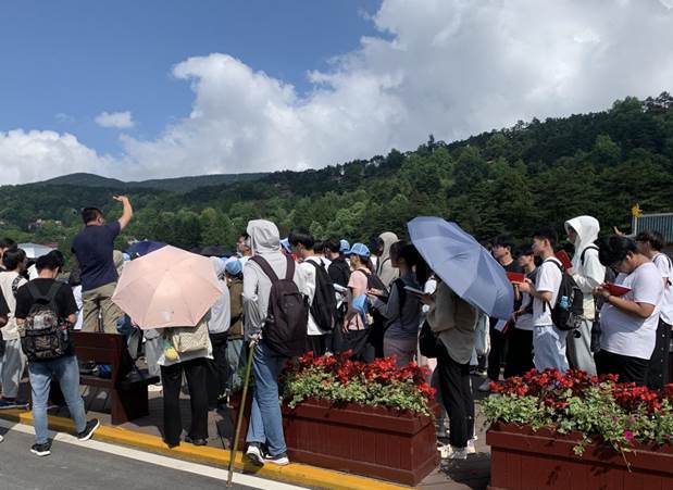 参观庐山会议旧址、庐山博物馆(毛泽东同志旧居)、毛泽东庐山诗词苑,将思想政治教育贯穿于野外实习全过程,坚定学生理想信念,厚植学生爱国情怀,引导学生在探索自然的实践中树立个人正确的国家观、民族观、人生观和价值观。