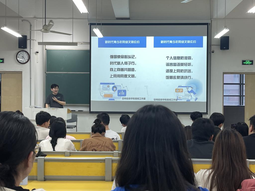 各班级分别召开“网络安全靠你我”主题班会,班级同学共同观看防范网络诈骗视频资料,同时,学生积极参与《2023年度大学生网络素养能力提升大课堂》线上学习,提升安全用网、文明上网的能力素养。