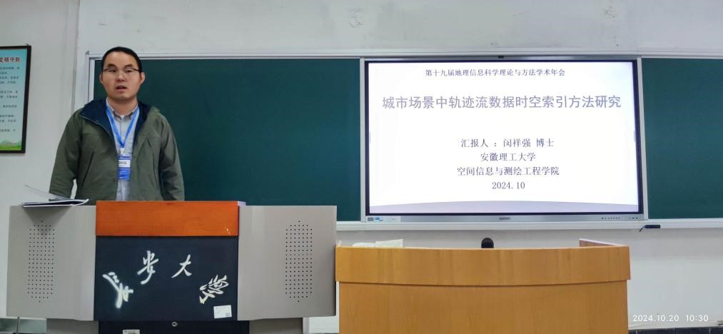 会议期间,闵祥强主持了青年学者分论坛四会场,并作题为“城市场景中轨迹流数据时空索引方法研究”的专题报告,介绍了城市场景数据模型与索引方法的相关研究成果,受到与会专家学者的热烈讨论与深入交流。