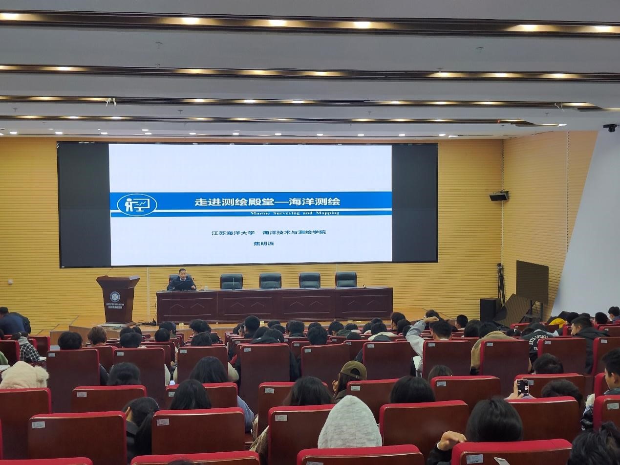 焦明连教授围绕“海洋测绘”的教学目标,从面向全球看海洋、海洋测绘的内容、海洋测绘的作用、海洋测绘的明天等4个方面,着重介绍了海洋的十大特征、海洋测绘十个方面的内容、海洋测绘十个主要应用领域以及未来智慧海洋的发展趋势。授课中,焦明连教授结合习近平总书记经略海洋的战略目标和海洋强国建设目标,鼓励同学们要牢记总书记嘱托,胸怀蓝色梦想,以奋发有为的精神状态、不负韶华的时代担当、实干兴邦的决心意志,不懈探索、砥砺前行,为海洋强国贡献青春力量。焦明连教授的讲座内容丰富、图文并茂,有机融入课程思政,讲授方式深入浅出,让大一新生对专业有了全新的认识,激发了新生从事测绘事业的热情。