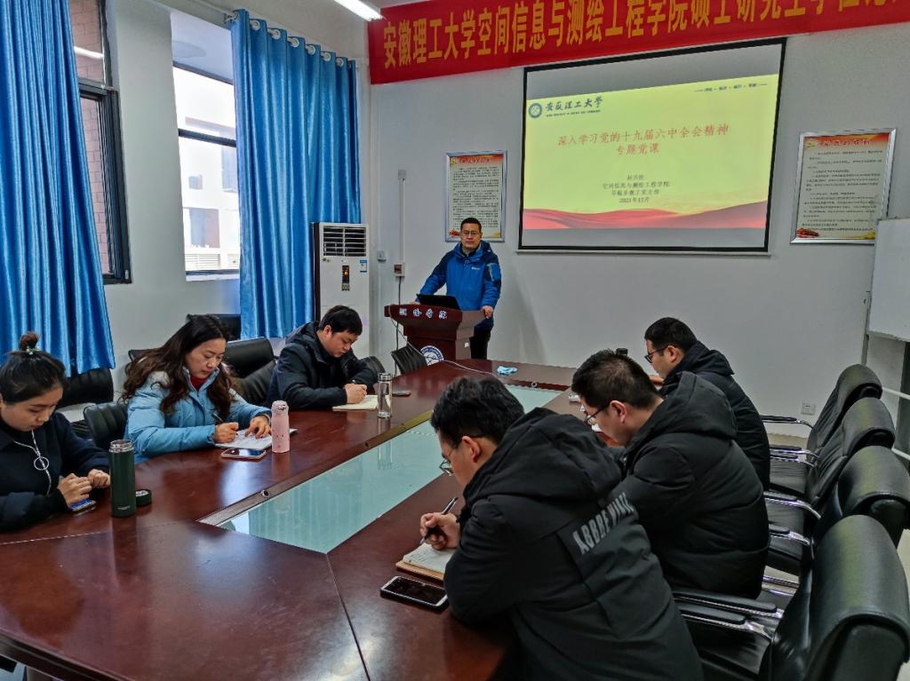 楼南404会议室为导航工程系教工党支部全体党员进行专题党课授课。
